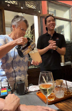 was our opportunity. One of the baristas, with assistance from a group member, demonstrated how